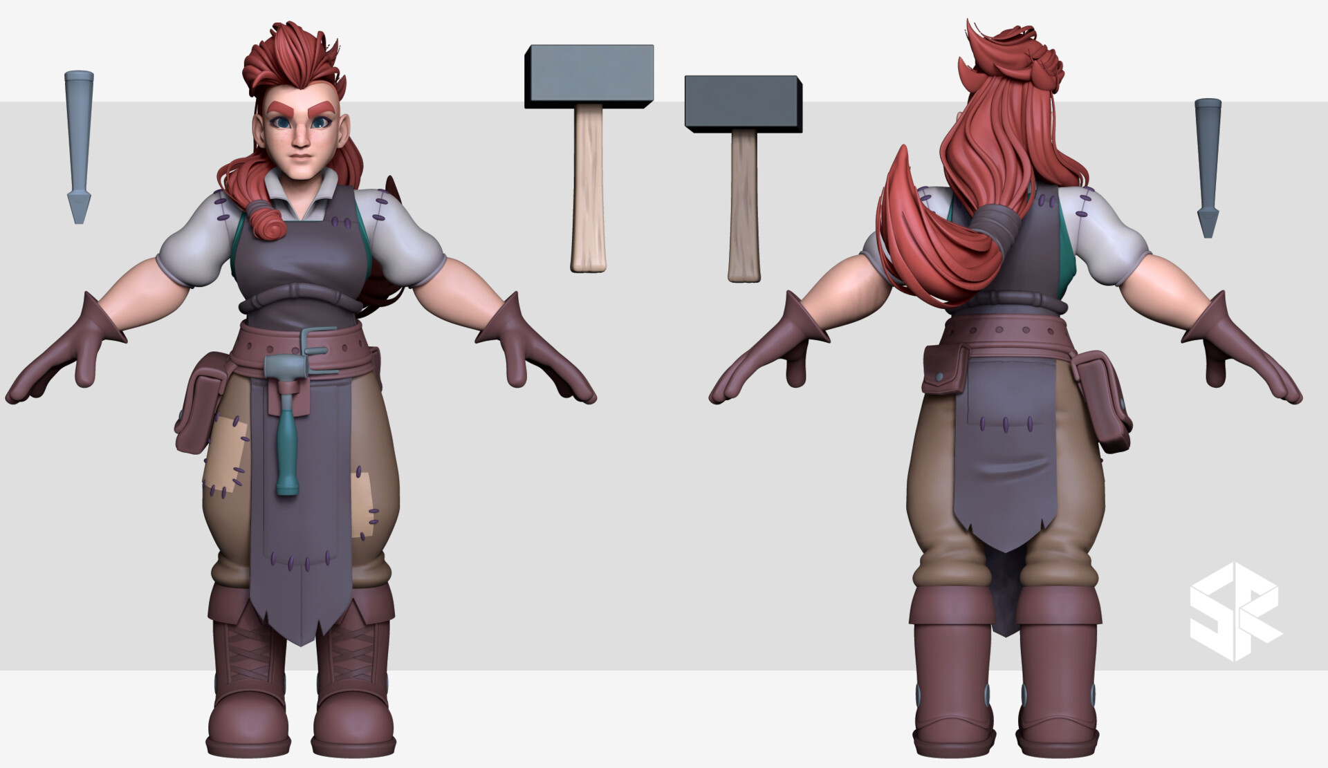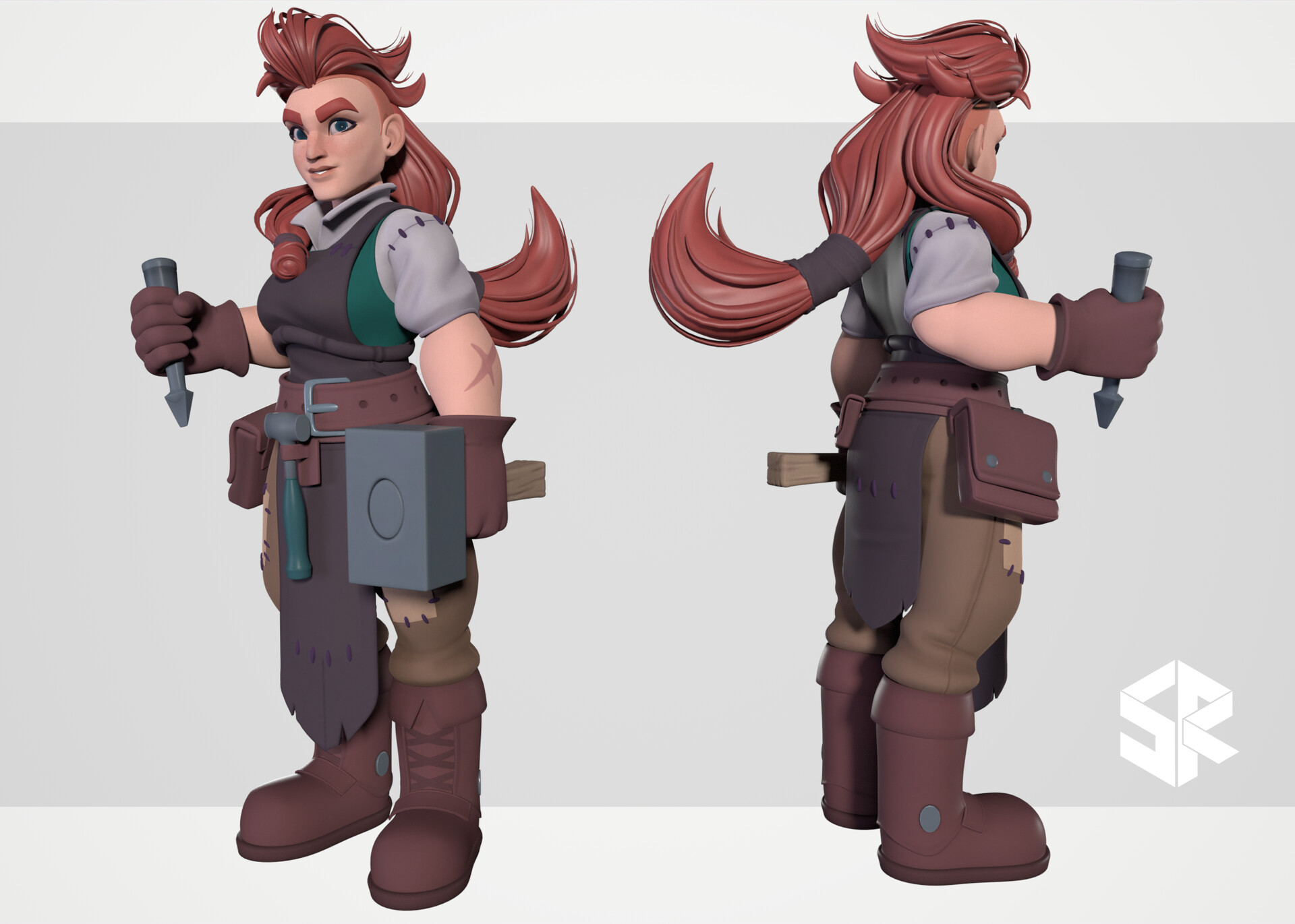 I sculpted this character, whose concept belongs to Nina Modaffari. I loved their design so much and had so much fun sculpting it! For sculpting I used ZBrush, Maya for some of the tools and the foundation of the pouches, and Marmoset Toolbag for rendering.